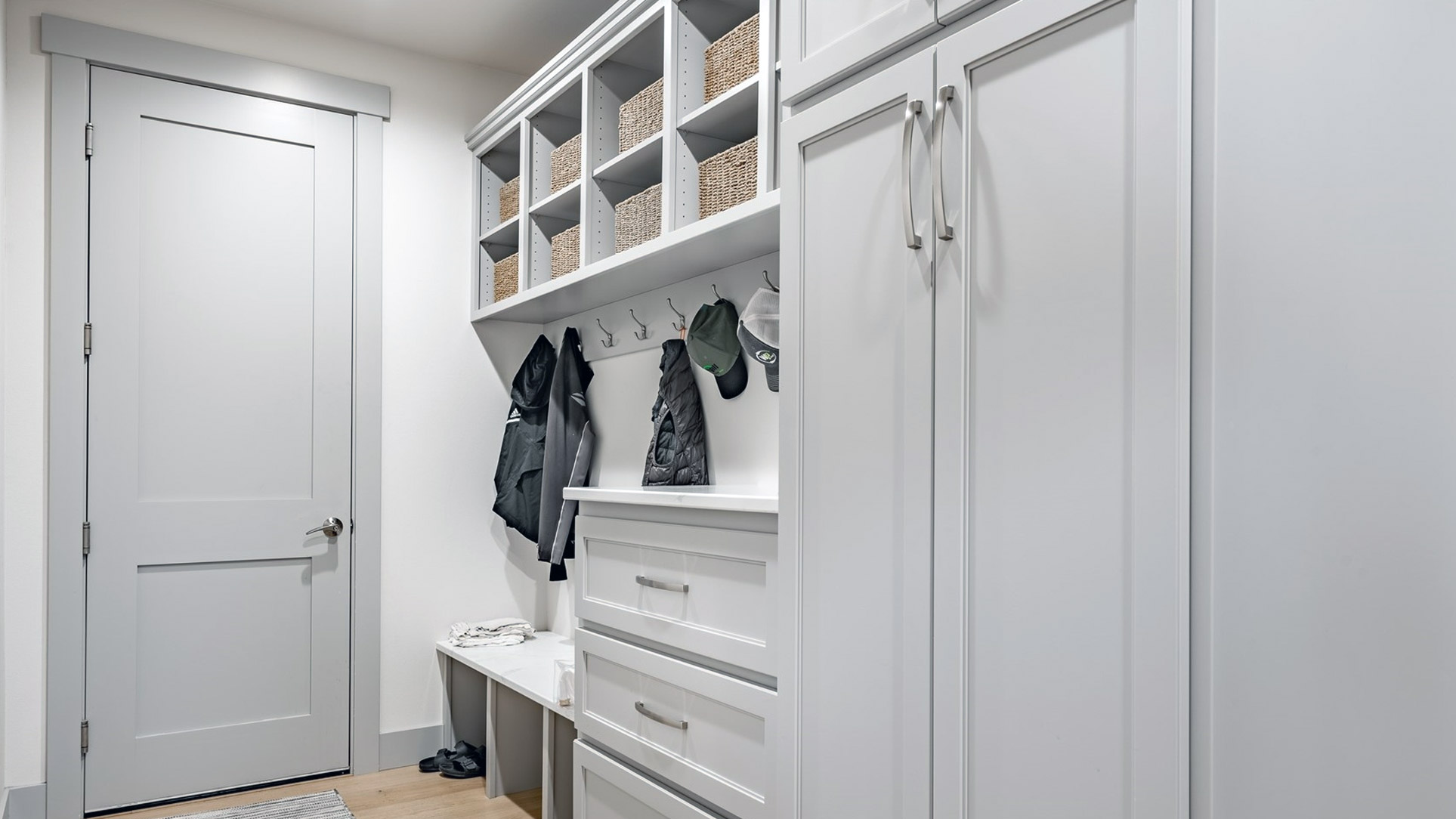 The ideal location for your mudroom depends on your home’s layout and your daily routine. Common spots include near the back door, garage entrance, or side entry. Pretty much anywhere that naturally serves as a transition between the outdoors and your living space. It’s important to choose a location that offers convenience without disrupting the flow of your home. Our team at Emmons will help you evaluate your space and recommend the best placement to maximize functionality, storage, and accessibility.
