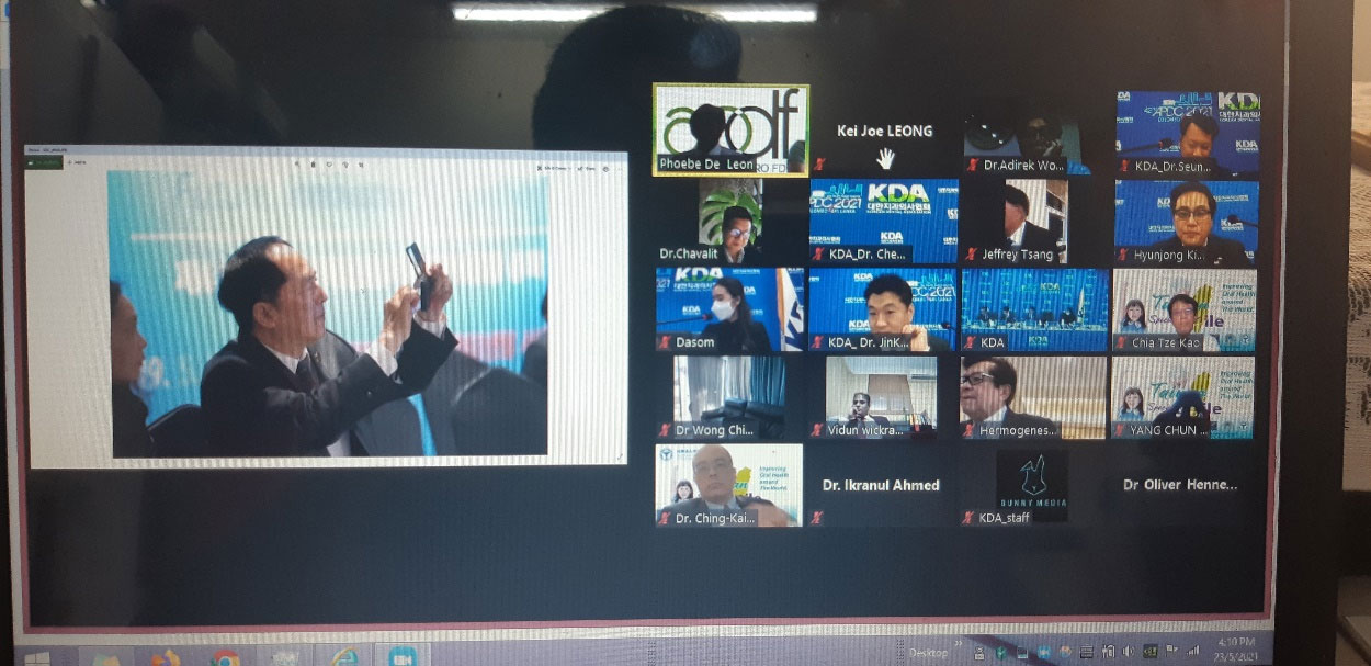 Also at the international arena, MDA attended virtually the Asia Pacific Dental Federation Delegates Meeting, held on the 23rd May 2021 and 25th May 2021, in conjunction with Asia Pacific Dental Congress, Sri Lanka. The delegation from MDA comprised of Dr Leong Kei Joe as the chief delegate, Dr Lim Chiew Wooi and Dr Chong Zhen Feng as the alternate delegates. The President of MDA was also given the opportunity to chair the scientific session where the speaker was Dr Gerhard Seeberger, President of FDI World Dental Federation.