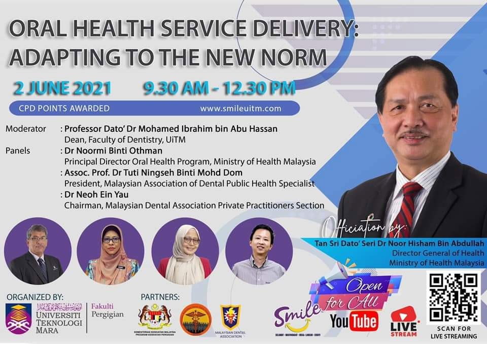 – Kempen Kesedaran Pelaksanaan Penyampaian Perkhidmatan Pergigian Norma Baharu organised the Dental Faculty of UiTM. Dr Neoh Ein Yau was one of the panellist the discussion on the topic “ Oral Health Service Delivery: Adapting to the New Norm” held on the 2nd June 2021.